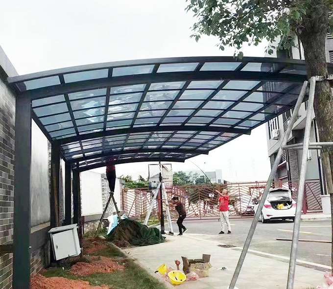 款式:单边型车棚、合抱型车棚、蝴蝶型车棚