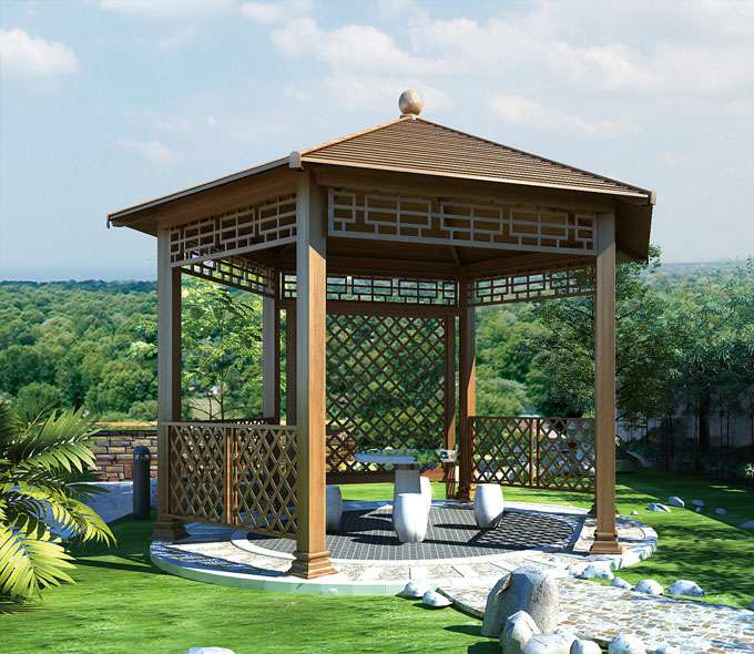 厦门维安绿色农业发展有限公司凉亭系列产品是采用高强度铝合金为原材料,经酸洗铬化,电泳或静电喷涂,木纹转印处理后,精密定制设计,保障安装。它具有防水防潮,不膨胀不变形,防腐蚀,具有逼真的木质感。成为别墅住宅及市政园林等建筑美丽的风景。
