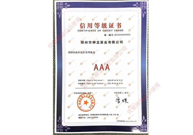 3AAA信用等级证书